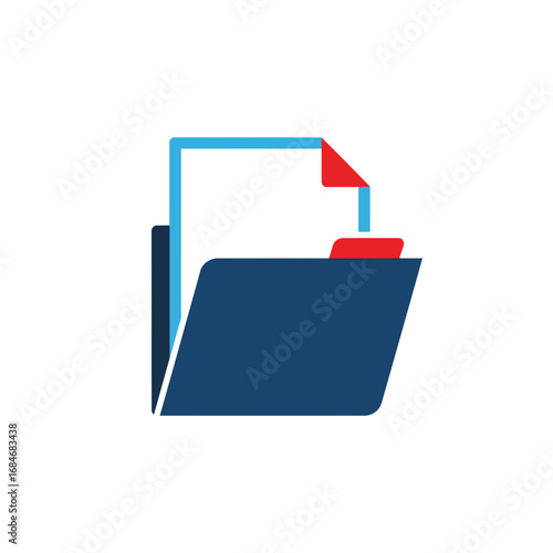 Stylized Blue Folder with Red and Blue Document Icon Graphic.
