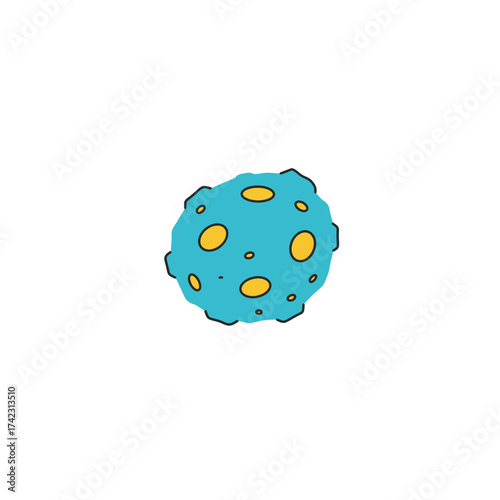Stylized blue moon with yellow craters for space themes