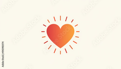 Stylized grateful heart icon with radiant rays in warm orange tones on a soft background