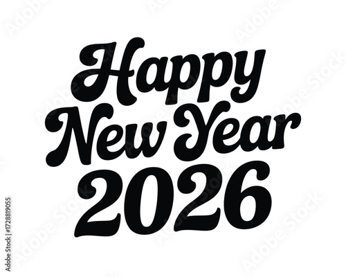 Stylized happy new year 2026 text vector graphic for festive celebrations silhouette vector illustration white background