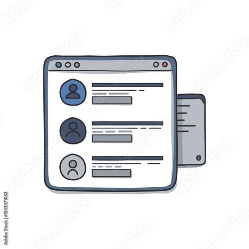 Stylized interface with user profiles and a sidebar featuring a hand-drawn aesthetic.