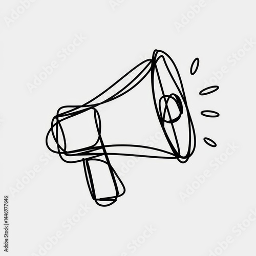 Stylized Megaphone Drawing with Sound Waves on White Background Design