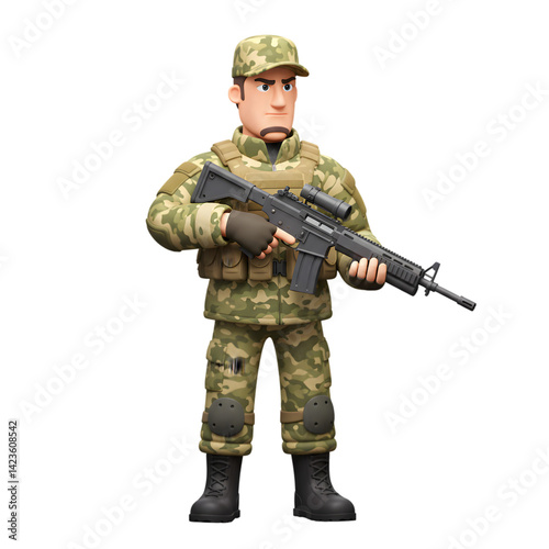 Stylized Military Character Armed with Rifle Ready for Action 3D Render