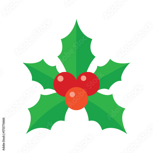 Stylized Mistletoe with Red and Orange Berries Isolated on White Background