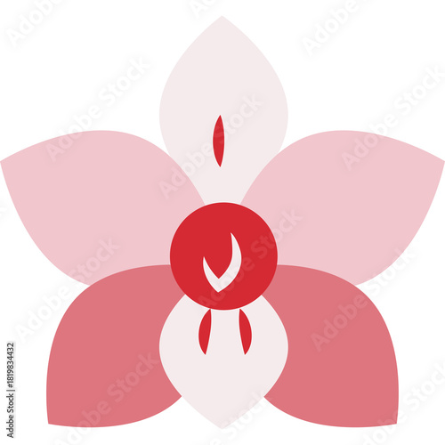 Stylized Orchid Flower Illustration in Shades of Pink and Red with a Central Red Disc and Five Petals on a Transparent Background
