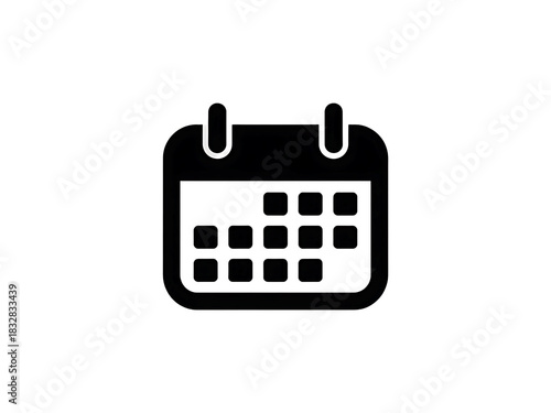 Stylized outline of a calendar icon with rings and grid of days isolated on transparent background