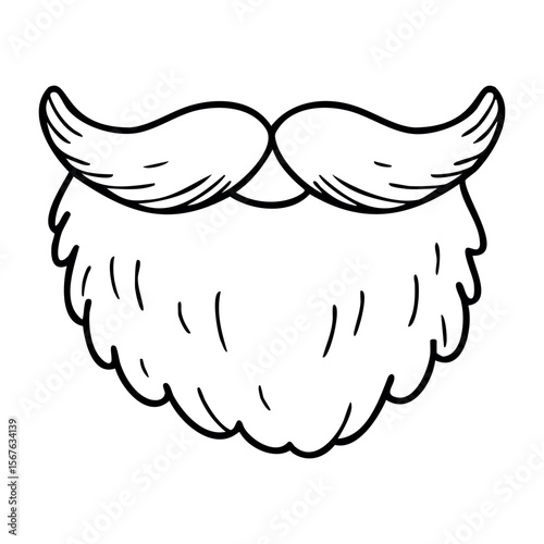 Stylized outline of a large mustache and beard design. Vector hand-drawn doodle illustration