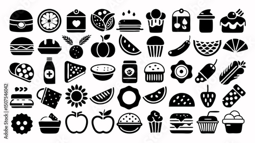 Stylized Pack Of Black And White Food Icons