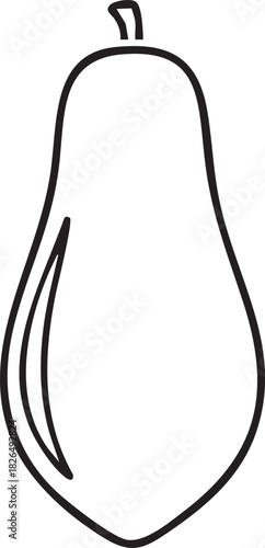 Stylized Pear Line Drawing – Minimalist Fruit Vector with Smooth Contour, Short Stem, and Internal Accent