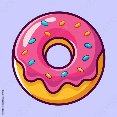 Stylized Pink Donut with Colorful Sprinkles on a Light Purple Background