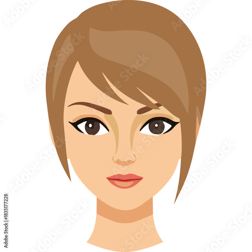 Stylized Portrait of a Woman with Brown Hair and Makeup Subtle Smile Dark Eyes on Black Background Vector Illustration