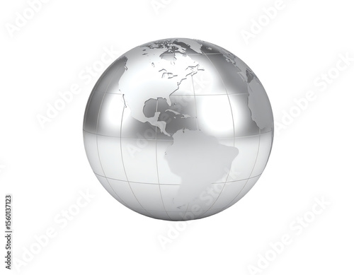 Stylized silver globe with reflective surface.