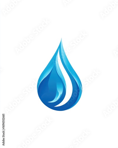 Stylized teardrop vibrant blues blend in a fluid form with a white swirl, isolated on a clean white background
