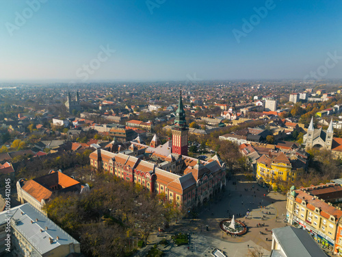 Subotica Town Hall Tower - Aerial Drone Shot, Subotica, Serbia, European City