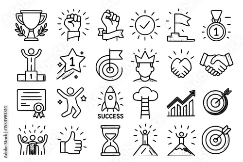 Success & Achievement Line Icons: Award, Growth & Goal Vector Set