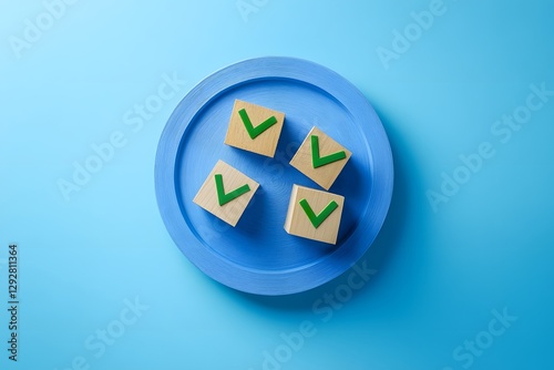 Success Checks on Blue Plate, Flat Lay