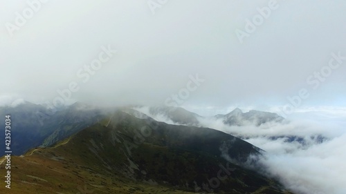 Sucha Przelecz Kasprowy wierch. Mountain covered in the clouds. High quality photo