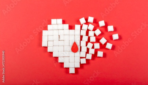 Sugar Heart with Blood Drop: Diabetes Awareness on Red Background