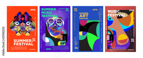 Summer Colorful Art and Music Festival Poster and Cover Template for Event, Magazine, and Web Banner.