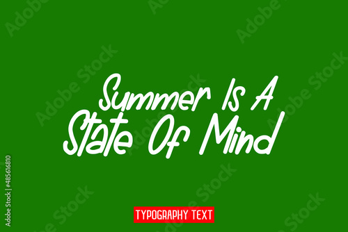 Summer Is A State Of Mind Typographic Text Vector design on Green Background