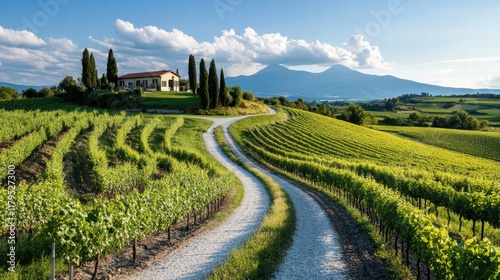 Summer Tranquility: Golden Fields and Lush Crops in the Countryside