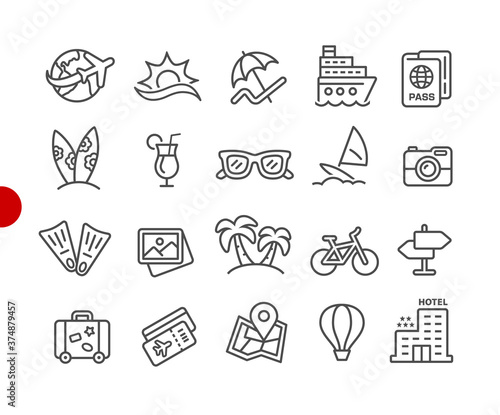 Summer Vacations Icons // Red Point Series - Vector line icons for your digital or print projects.
