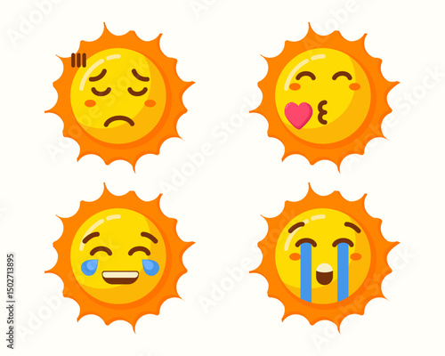 Sun cartoon with different expressions isolated set collection