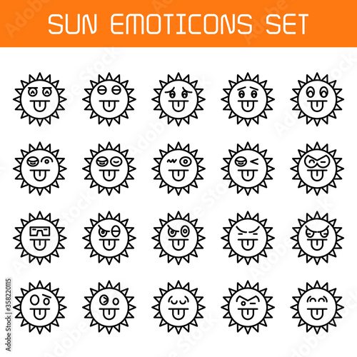 sun emoticons icons line set