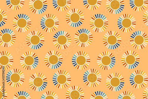 Sun groovy retro abstract geometric pattern 70s 80s background.