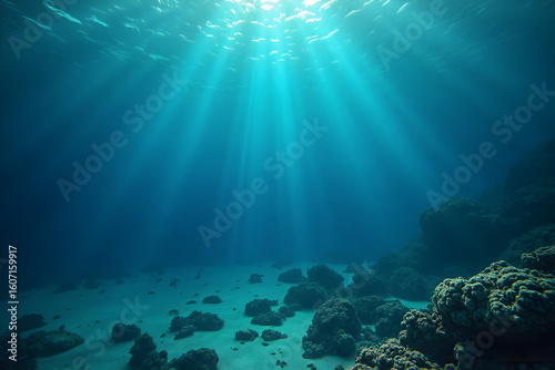 Sunbeams Streaming Through Clear Ocean Water Over Seabed