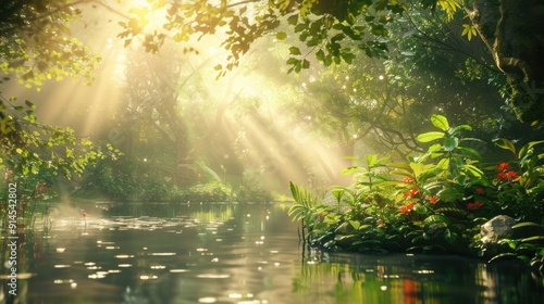 Sunbeams Through Lush Jungle