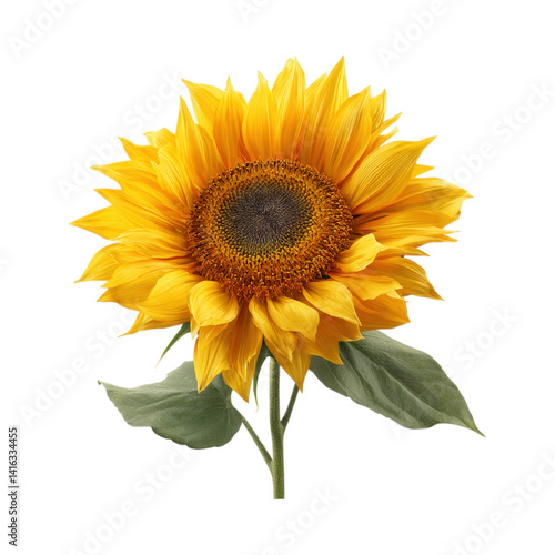 Sunflower Head Bloom with yellow petals and dark middle Isolated Transparent Background