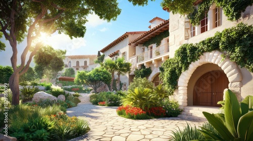 Sun-Kissed Tuscan Retreat: Capturing the beauty of a sun-drenched Tuscan villa, with its classic architecture, lush gardens, and inviting ambiance, evoking a sense of peace and luxurious tranquility.