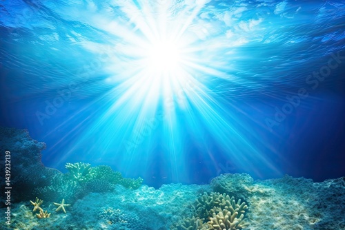 Sunlight beams through underwater coral reefs