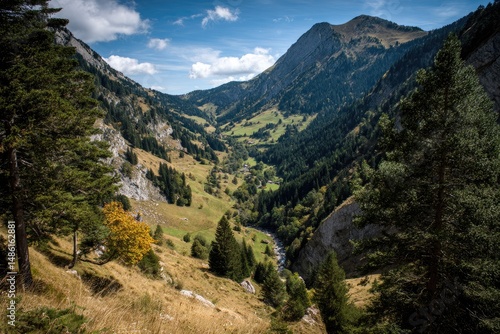 Sunlight Dappled Valley Amongst the Mighty Mountains