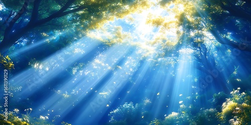 Sunlight Filtering Through Forest Canopy.