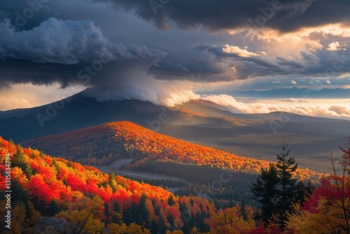 Sunlight Highlights Colorful Foliage Beneath Dramatic Storm Clouds at Mt Timpanogos