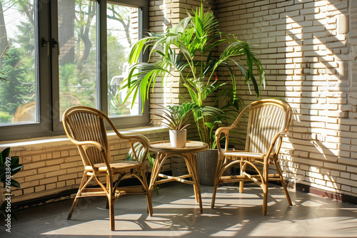 Sunlit Conservatory with Rattan Furniture