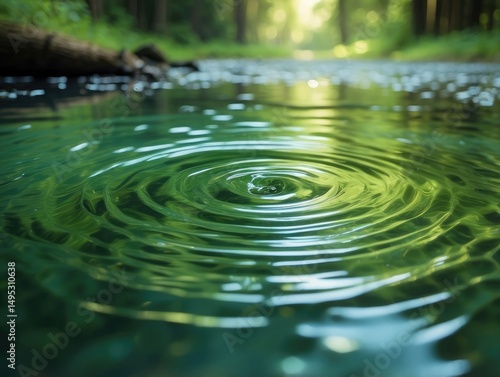 "Sunlit Forest Reflected on Tranquil Water Surface"