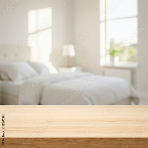 Sunlit Minimalist White Bedroom Interior with Bedding and Window View
