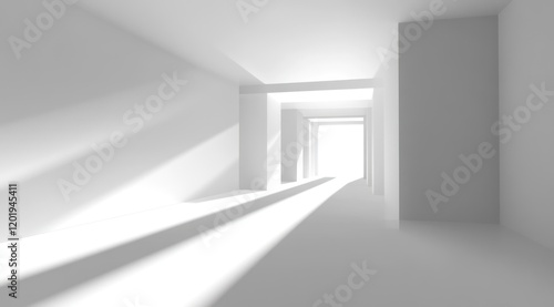 Sunlit minimalist white corridor.