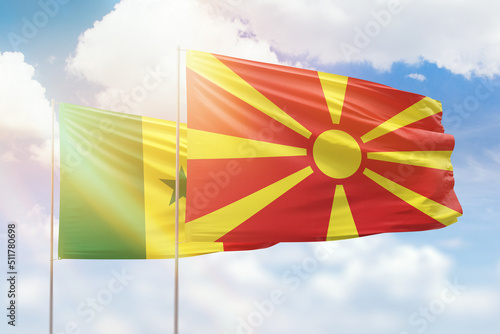 Sunny blue sky and flags of north macedonia and senegal