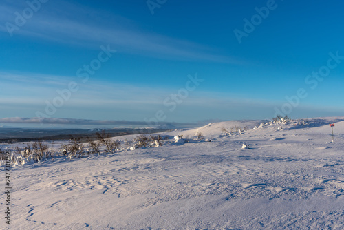 Sunny landscape view from the top of the northern Swedish mountains