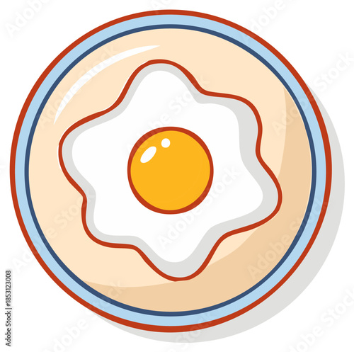 Sunny Side Up Egg on a Colorful Plate Breakfast Cuisine Illustration Simple Style Kitchenware Icon Food Element Design