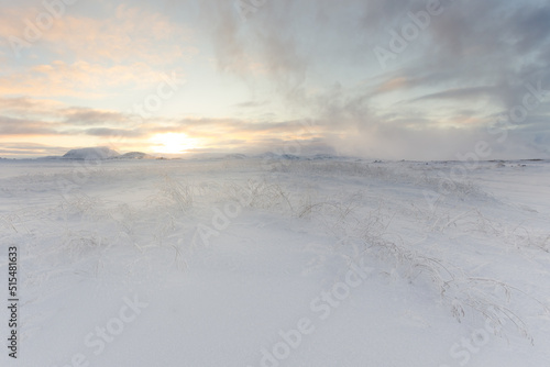 Sunrise in Iceland snow.