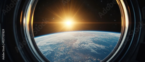 Sunrise Over Earth Seen Through Spaceship Window