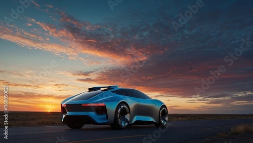 Sunset Drive: Futuristic Electric Car on Open Road