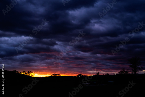 sunset in cold and rainy november - dark tones