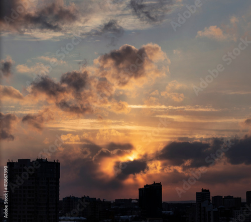 Sunset over city