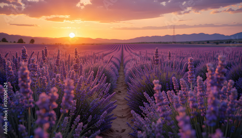 Sunset Over Lavender Field